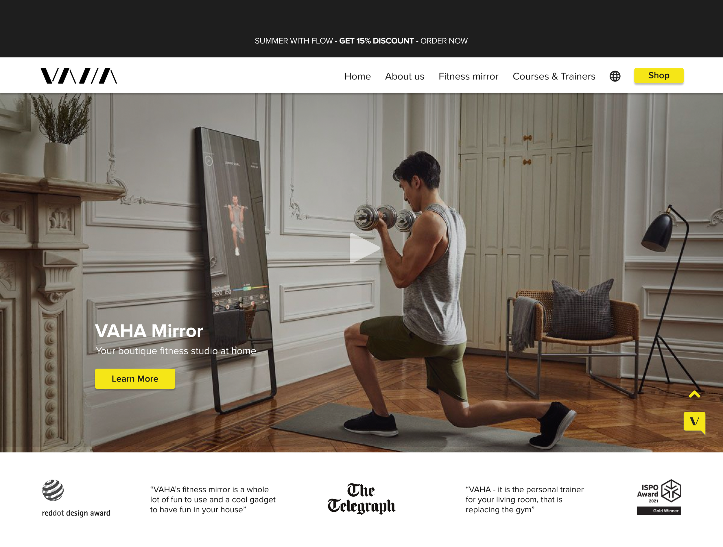 vaha sells a premium smart fitness mirror with a high price point and a complex value proposition (hardware + subscription + training ecosystem). initial stakeholder + user interviews and swot analysis i conducted highlighted that the existing purchase flow has frictions: